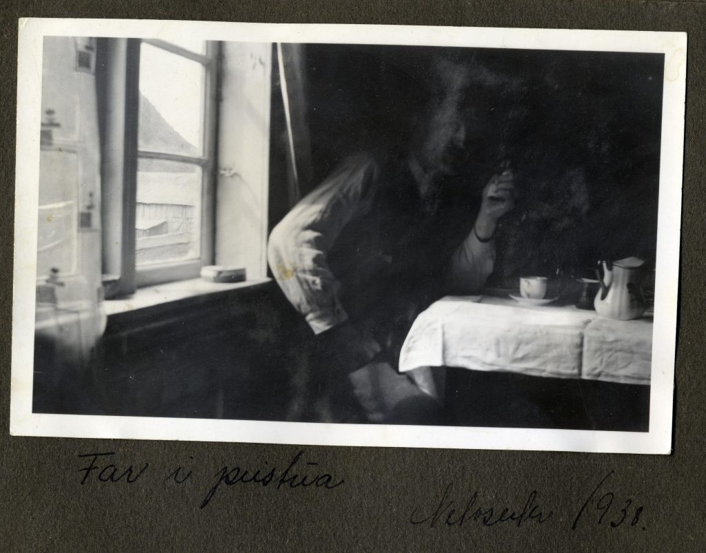 Fotoalbum frå Gjeilo som Tea har skrive ned notat i.
