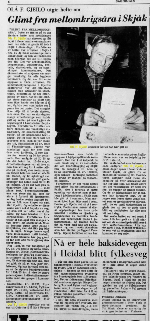 Ola F. Gjeilo: Glimt fra mellomkrigsåra 1966